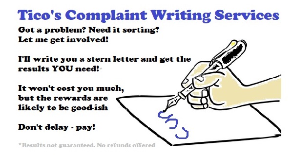 |  | Want to make a complaint? No matter too big or small - Tico will take on your complaint with this fabulous complaint writing service! Sold out! More stock due in soon |